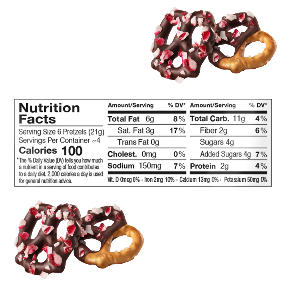WHY WE MADE IT: Eat Chocolate, Be Merry. Satisfy your sweet tooth and make the holidays a little merrier with low-sugar peppermint chocolate covered gluten free pretzels.